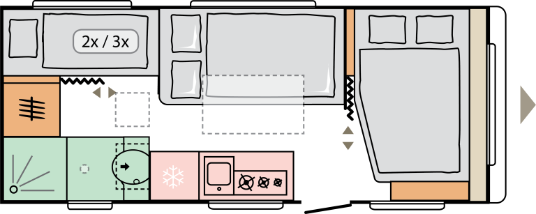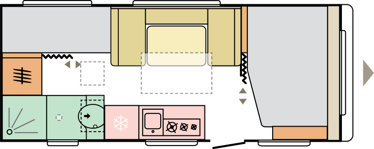 En la Adria Altea 552 PK Luxe 60 Aniversario todo está pensado al detalle: desde su moderna distribución de cama de matrimonio transversal, literas ideales para los peques, hasta su cocina totalmente equipada y un baño con ducha independiente que te hará sentir como en casa.