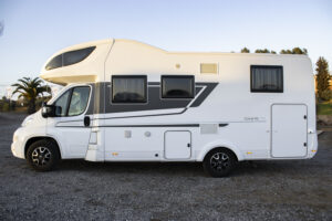 En el exterior, la Coral XL660 SL muestra el diseño típico de las capuchinas, con un volumen superior que maximiza el espacio interior. Su estructura es robusta y bien aislada, pensada para viajes largos y uso frecuente. Dispone de amplios garajes y compartimentos exteriores para equipaje, bicicletas u otros accesorios. Las ventanas aportan buena entrada de luz y ventilación, y la carrocería está diseñada para ofrecer durabilidad y resistencia. En conjunto, es una autocaravana sólida, espaciosa y muy funcional para viajar en grupo.