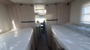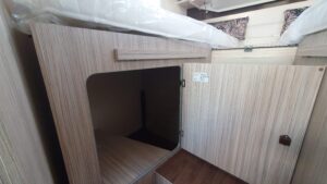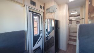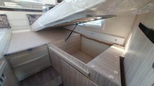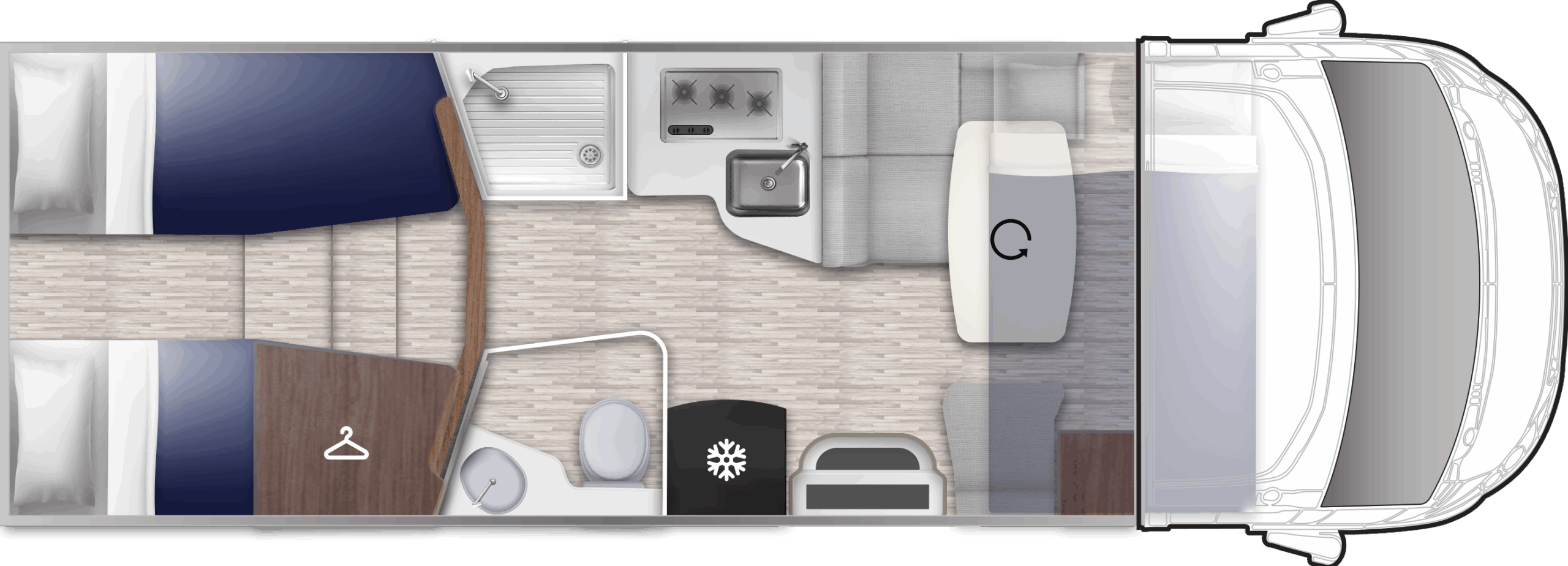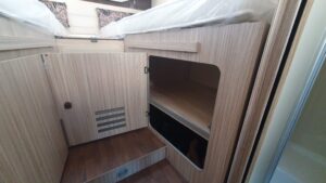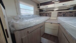 La zona de descanso es acogedora y ergonómica, con camas confortables que invitan al descanso tras un día de aventuras. La cocina totalmente equipada te permite preparar tus comidas con comodidad, mientras que el baño funcional ofrece privacidad y practicidad en cualquier destino. Además, sus amplios espacios de almacenamiento aseguran que todo lo que necesites viaje contigo, manteniendo el interior ordenado y agradable.