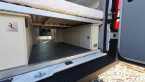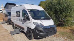 En el exterior, la Robeta Ares Family presenta una carrocería robusta y moderna, con líneas elegantes y una presencia más cercana a una autocaravana que a una camper compacta. Su tamaño mayor proporciona más estabilidad y espacio, manteniendo un buen equilibrio en carretera. La estructura está bien aislada, pensada para uso en diferentes estaciones del año. Además, cuenta con accesos cómodos, ventanas bien integradas y opciones como techo elevable que aumentan su versatilidad. En conjunto, es una camper potente, espaciosa y muy completa para viajar en familia con total comodidad.